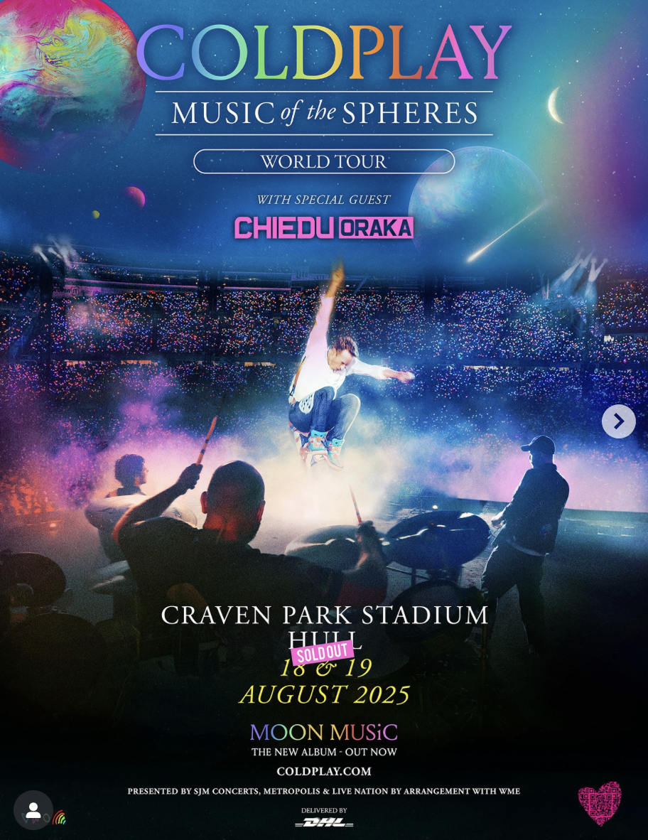 Former Endsleigh Holy Child and St Mary’s College student, Chiedu Oraka, opened for global superstars Coldplay at Hull’s Craven Park Stadium - part of the band’s Music of the Spheres world tour.