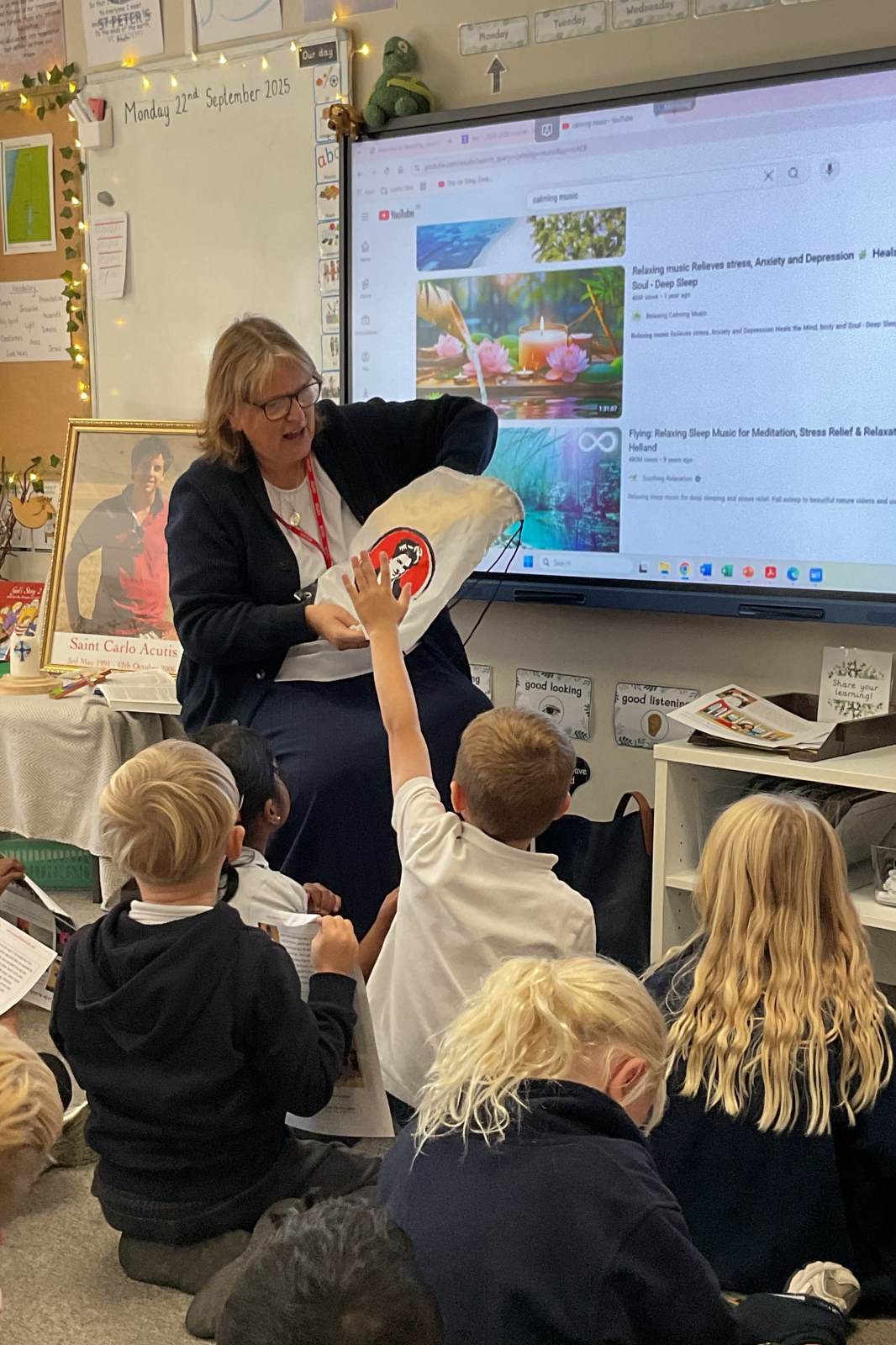 Headteacher Sarah Seeley expressed her gratitude for the visit, saying, “It was a privilege to welcome Sister Anna and the relic of Saint Carlo. Our children were captivated by his story and inspired by his example. This visit has truly deepened our school’s spiritual life.”