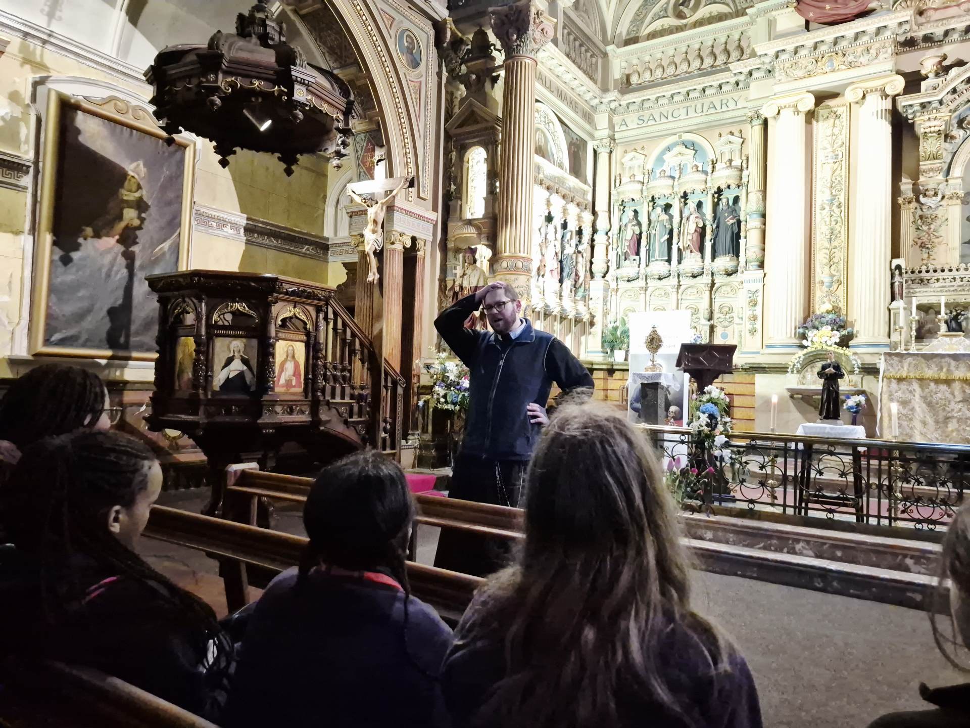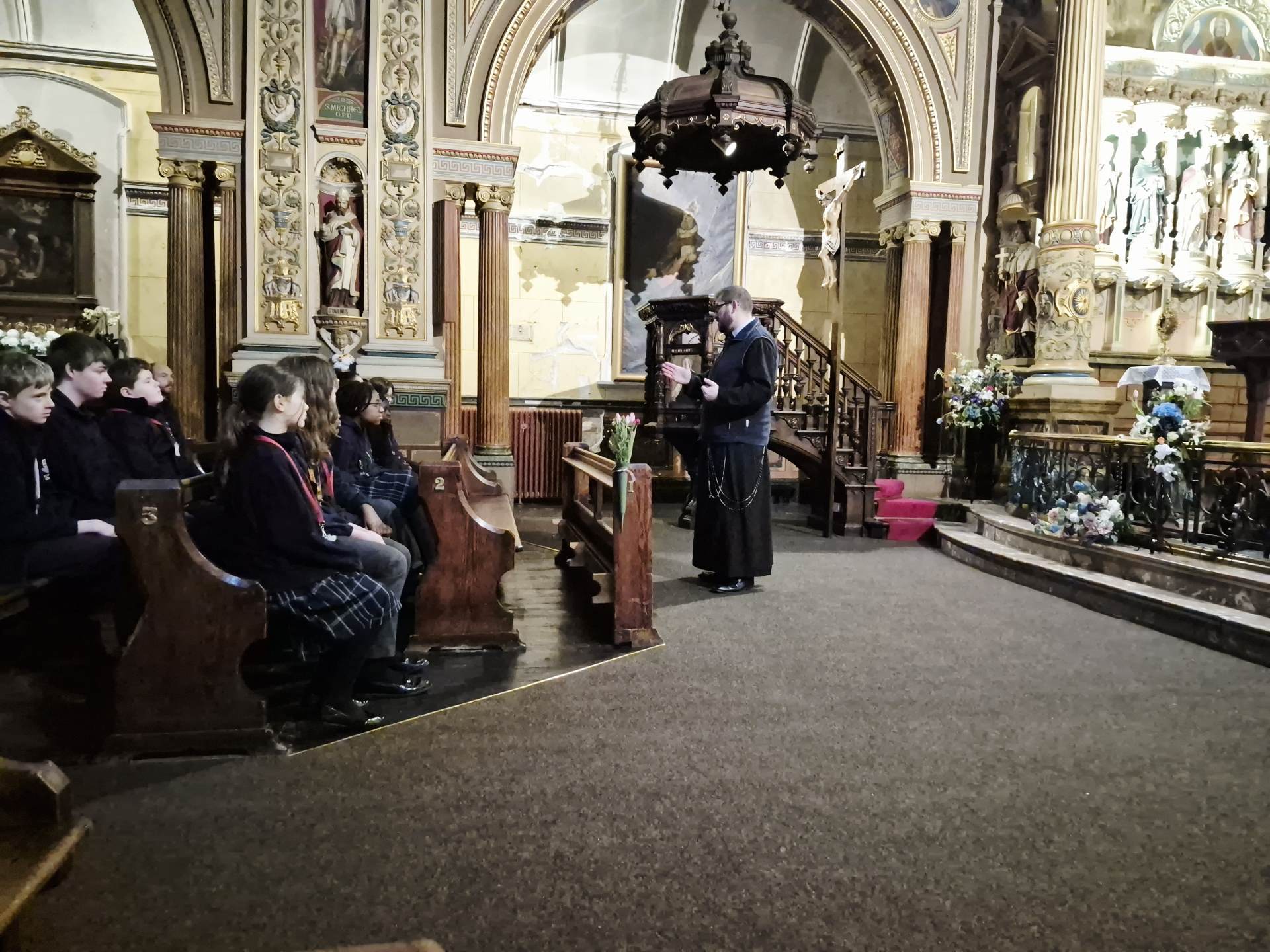 As part of the visit, students and staff were treated to a fascinating tour of the historic features of the church, led by Fr Phillip Cunnah. Fr Phil shared insights into the rich history and architecture of St Charles Borromeo, helping students to appreciate the church not only as a place of worship, but also as a living part of Hull’s heritage and the church’s mission.