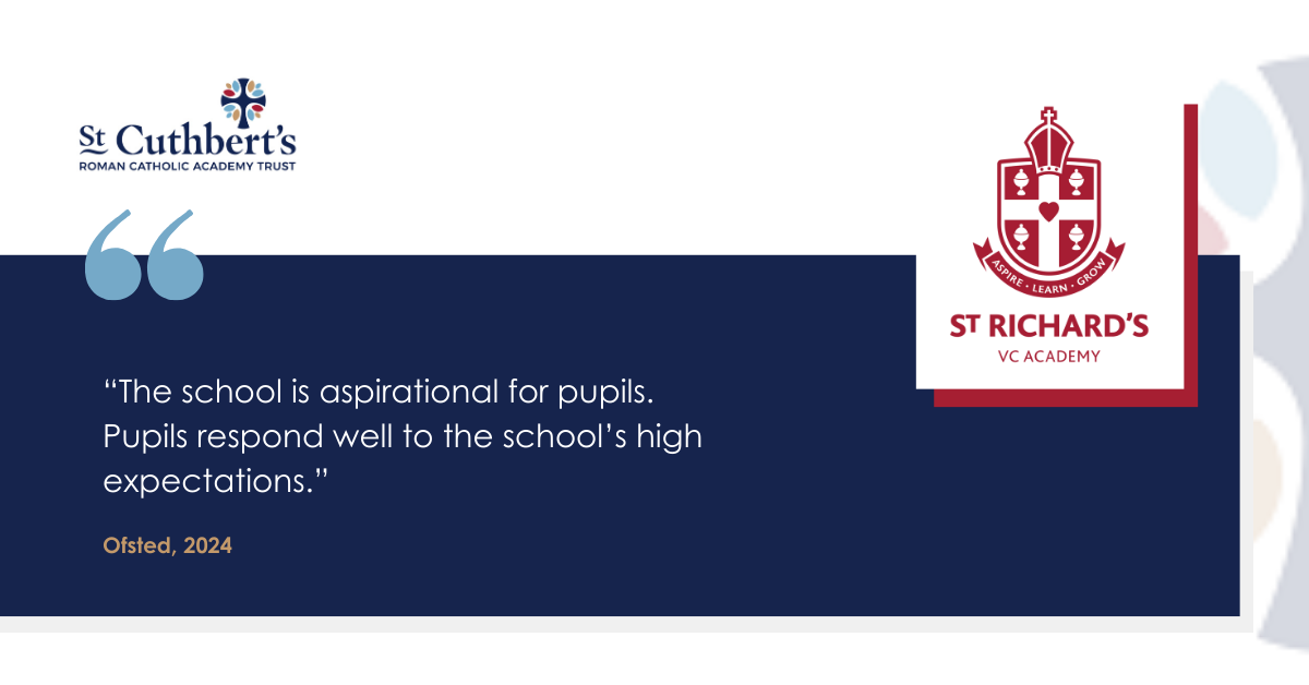At St Cuthbert's Roman Catholic Academy Trust, we are proud that all of our schools are recognised by Ofsted as providing a high standard of education. Of our 15 schools, 14 are rated Good and one has been judged Outstanding. This reflects the dedication of our staff, the strength of our leadership and our shared commitment to ensuring that every child receives the very best opportunities to succeed.